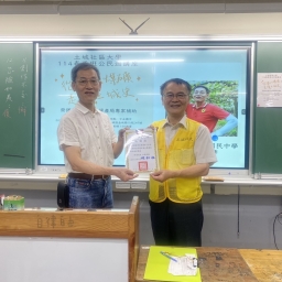 (5/2)本校邀請到中正國中賴秀淋講師蒞臨演講,賴老師為資深的文化歷史專家,更精通土城地區的歷史脈絡,由陳松柏校長親臨主持,並至贈感謝狀,賴老師就台灣煤礦開採、海山煤礦、史前文化遺址、大安圳、大墓公、乙未年抗日、承天禪寺等走讀土城史,與現場師生及同仁分享,彷彿進入時光隧道,像一本活的歷史故事書,實在太精彩了,會後合影留念。