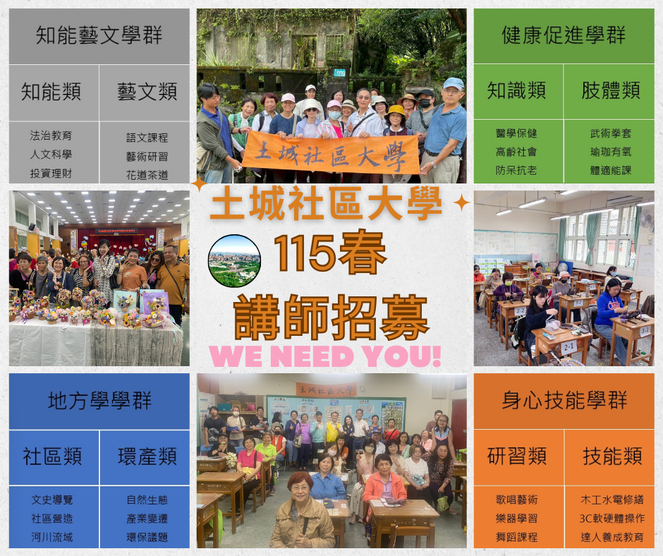 土城社大也歡迎講師熱情推薦新血加入,期許我們都學得開心並有所獲得~~