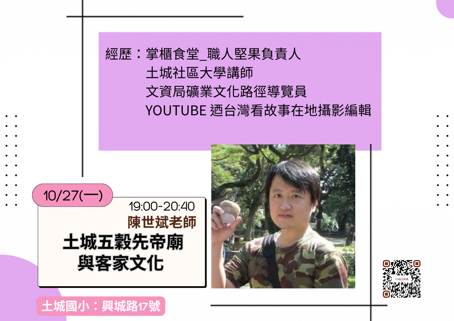 10/27 土城五穀先帝廟與客家文化 陳世斌老師