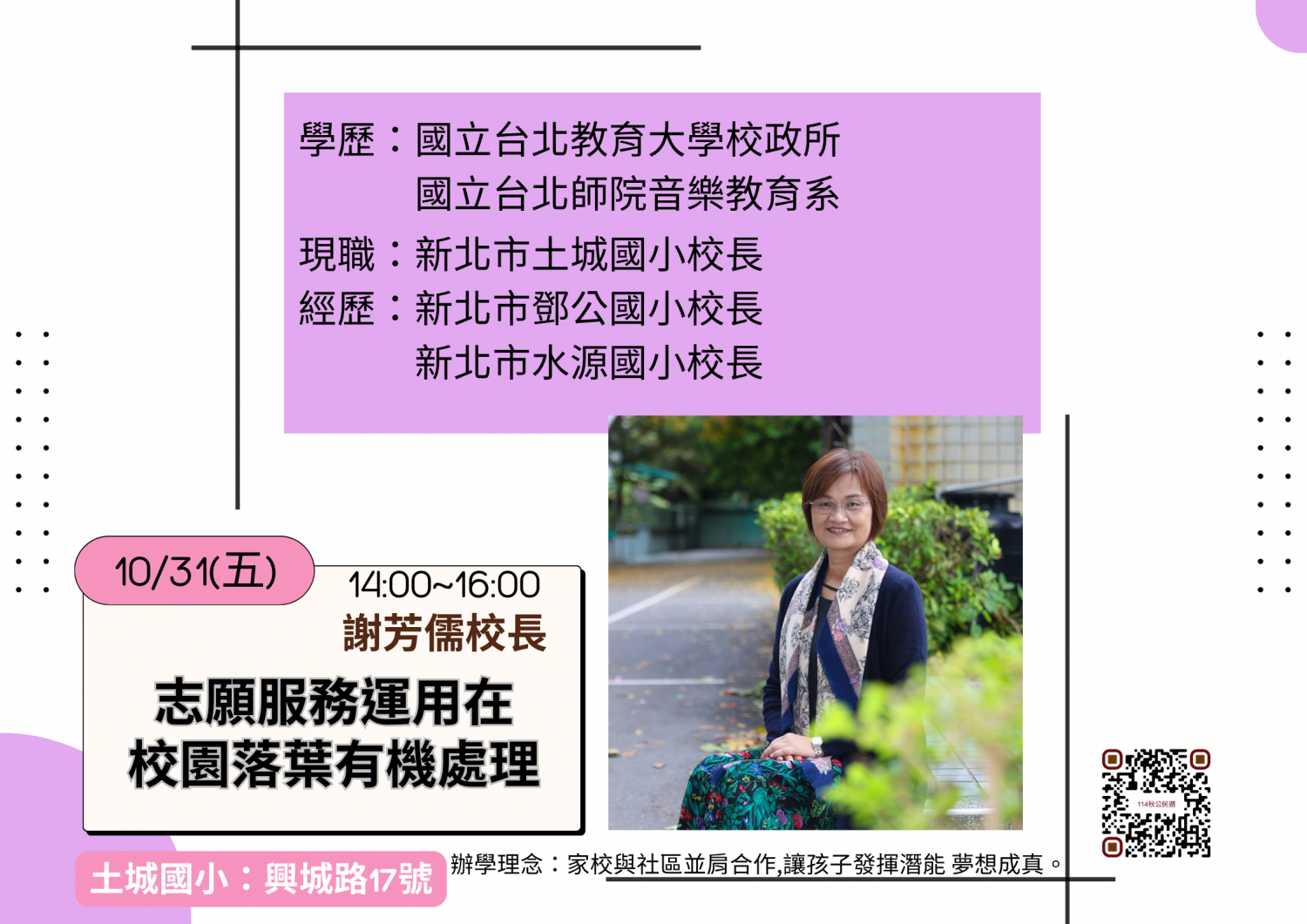 10/31 志願服務運用在校園落葉有機處理 - 土城國小 謝芳儒校長