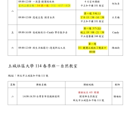 各班教室詳情地點請見以下總表,如對於課程有任何問題,請來電社大聯繫