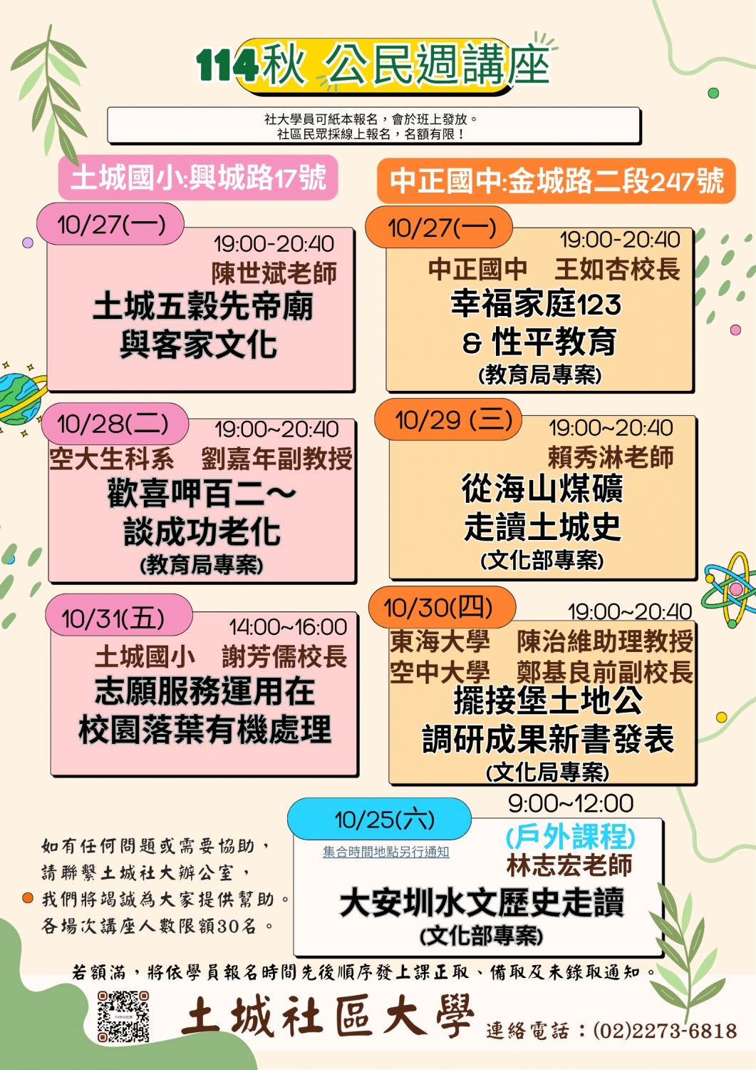如有任何問題或需要協助,請聯繫土城社大辦公室 (02)2273-6818,